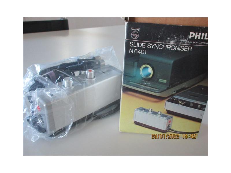 SINCRONIZZATORE Philips, questo sincronizzatore serve per sincronizzare il suono con la proiezione delle diapositive. Modello N6401, era molto usato in fotografia analogica. Si accoppiava con il registratore a cassette N2209AV . E' ancora imballato. Zona NOVARA