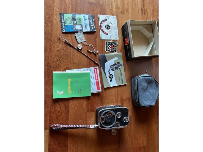 vendo cinepresa anni'50,focali da 12,5 a 36 mm, funzionante, con ricambi, scatola originale, con custodia in cuoio