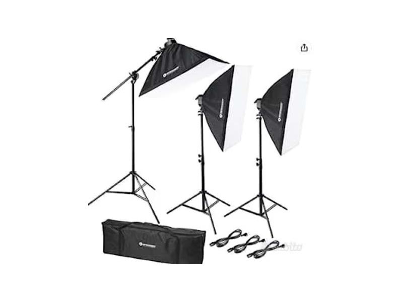 Set compatto con 3 lampade a luce diurna e softbox per una luce morbida