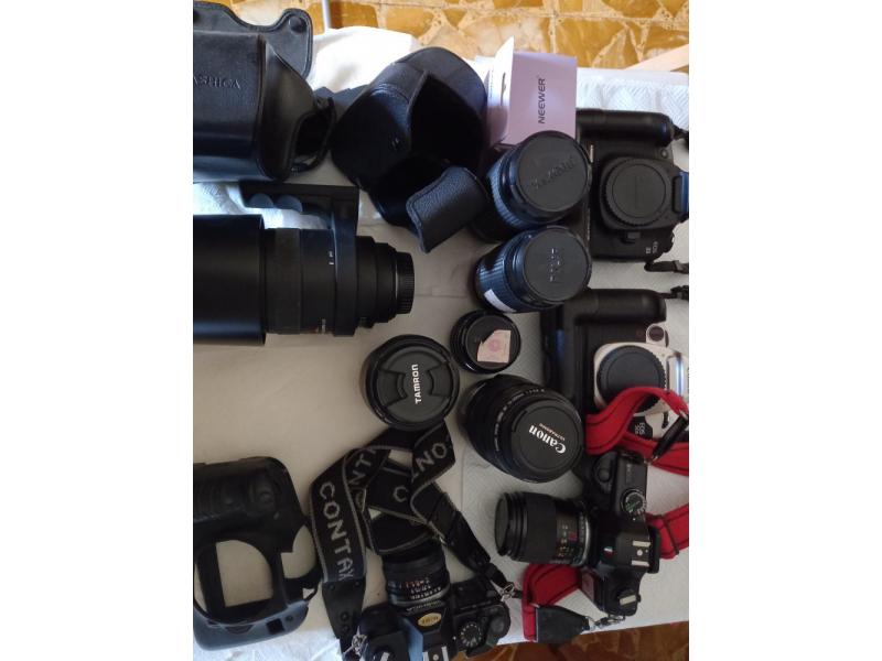 reflex analogiche Yashica FX3 Super con 50 mm., Yashica 107 MP con obb.28-70,Canon Eos 50E eye control usata pochissimo,Canon Eos 33 in buone condizioni, Canon Eos 5D in buone condizioni.
