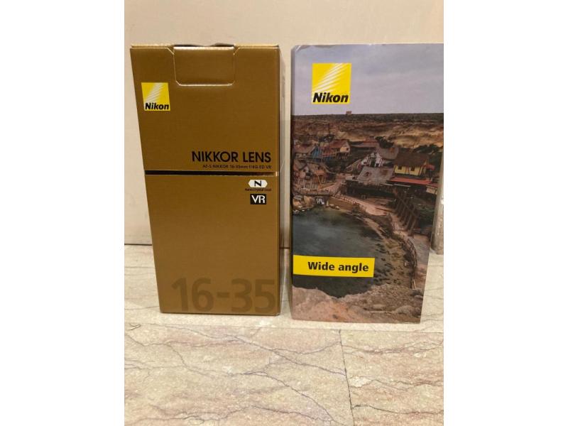 Vendo ottica AF-S AF-S Nikkor 16-35 mm 4 G ED, come nuovo nessun segno di uso, completo di imballo, certificato di proprietà e garanzia Nital. Lenti senza nessun segno o muffa. Fornito di accessori originali: tappi anteriore e posteriore, paraluce e astuccio. Consegna a mano Roma
