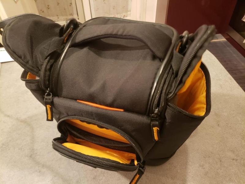 Borsa imbottita CASE LOGIC con tracolla di dimensioni ideali per riporre una fotocamera (anche di grande dimensioni) con obiettivo lungo (tipo 18-200) + un obiettivo supplementare + un flash + batterie e vari accessori.