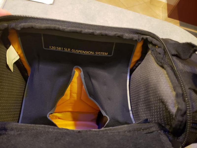 Lo scompartimento centrale ha un sistema che sospende la reflex sopra la parte inferiore della custodia, fornendo una protezione superiore agli urti.