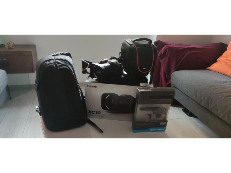 Canon XC10 usata pochissimo, con scatola originale, microfono esterno Sennheiser MKE400, due borse (zainetto a tracolla e custodia per reflex). Ottima sia come reflex che come telecamera (filma in 4K)