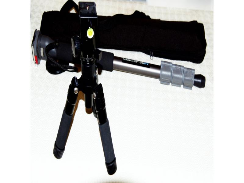 monopiede in alluminio mai usato con fodero a zippo; trepiede in nero alluminio con testa a tre posizioni da tavolo viene consegnato Su Roma brevi mano; sul Resto di Italia € 15 di spese di spedizione che verrà effettuata dopo avvenuta ricezione di pagamento tramite paypal