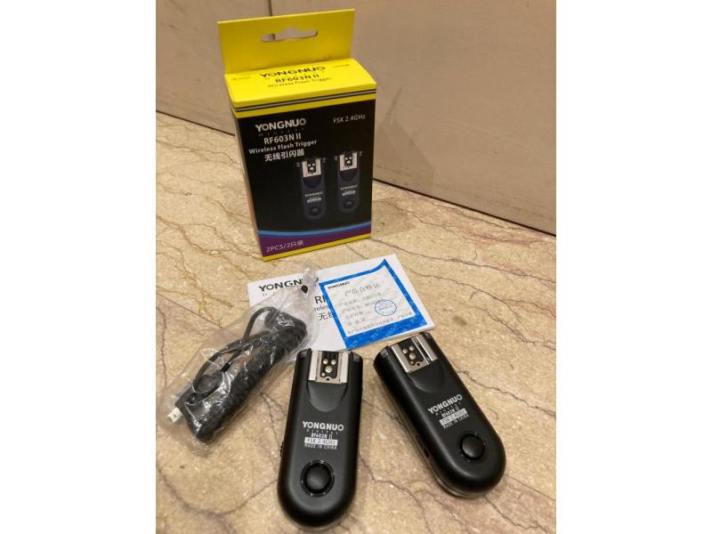 Vendo set trigger Yongnuo RF603N II per Nikon serie D3000 D6000 D7000; D70,D80,D90 usato pochissimo come nuovo. Completo di imballaggi ed accessori. Consegna a mano a Roma