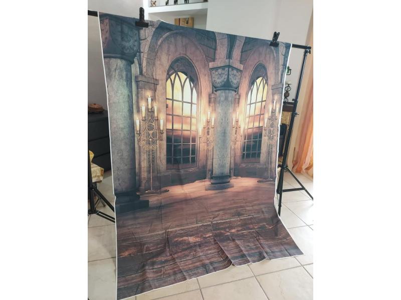 2 Stativi per sfondi ,+ stativi x soft box, lampade e flash 5 sfondi scenografici + 1 nero + 1 bianco