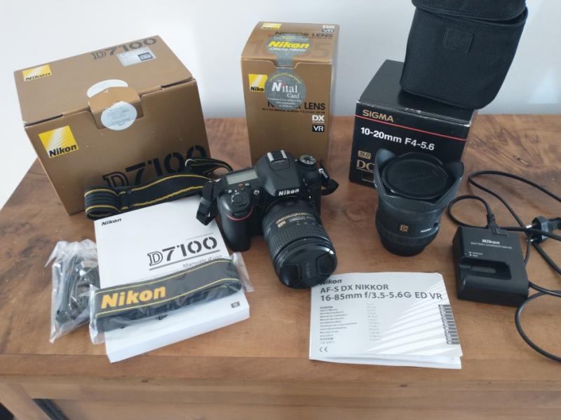 Vendo Nikon D7100 completa di obiettivo Nikkor 16-85 mm f/3.5-5.6 G ED VR e di Sigma super grandagolare 10-20 mm F4-56 EX DC HSM. Tutti i prodotti sono in ottimo e perfetto stato, completi tutti di scatole, manuali e documenti.
