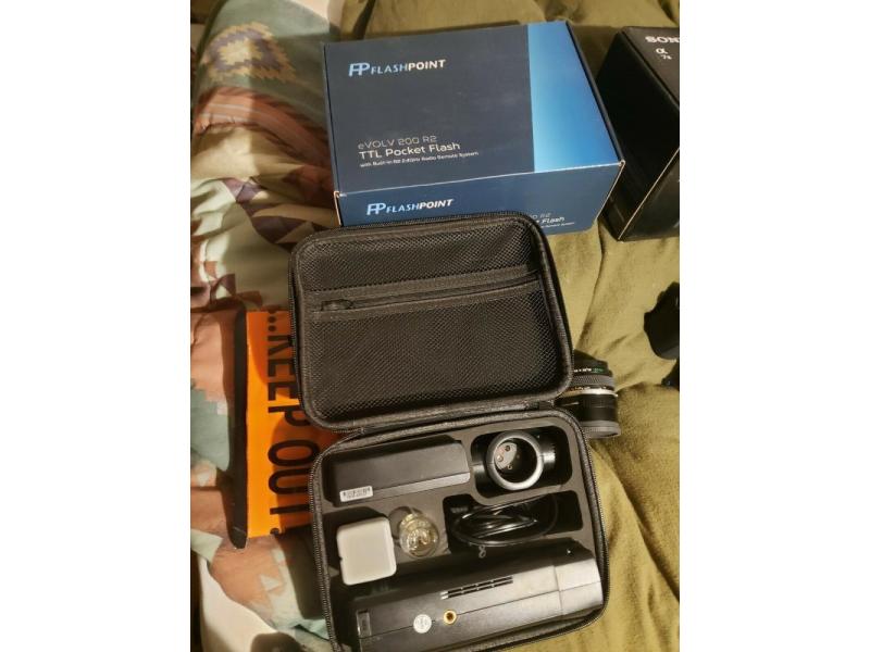Sony Alpha A7 II Mirrorless + 80mm 1.8 + laowa 15mm f2 + flashpoint evolv LOTTO.