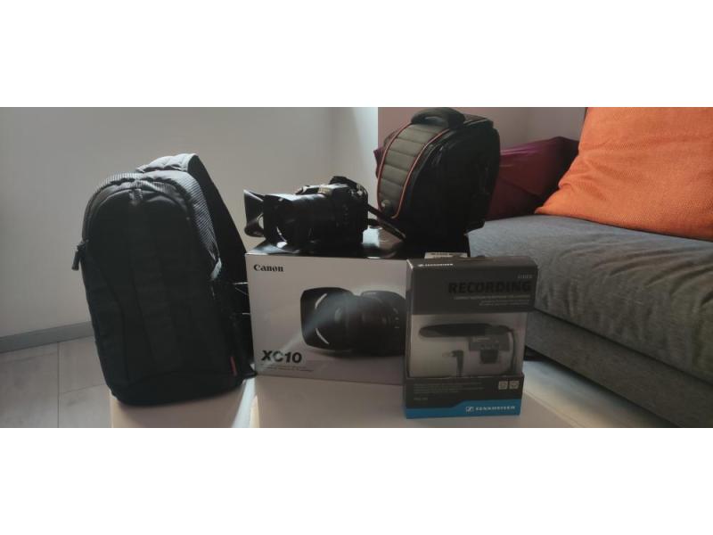 Canon XC10 usata pochissimo, con scatola originale, microfono esterno Sennheiser MKE400, due borse (zainetto a tracolla e custodia per reflex). Ottima sia come reflex che come telecamera (filma in 4K)