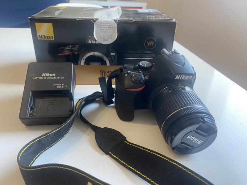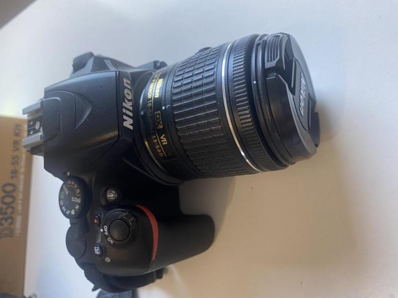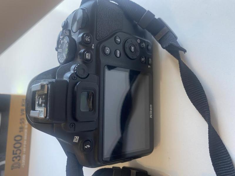Nikon D-3500 18-55 VR Kit, usata pochissimo, solo 3480 scatti, come nuova senza nessun segno di usaura, con scatola e accessori originali (tracolla, caricabatterie, scheda di memoria)